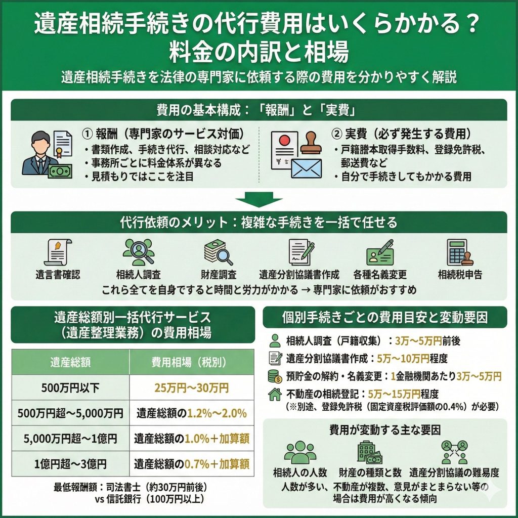 遺産相続手続きの代行費用は何によって決まりますか?料金の内訳と相場